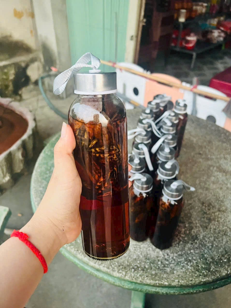 Mỗi chai chứa 500ml nước mắm nhỉ và 10 con cà cuống đực